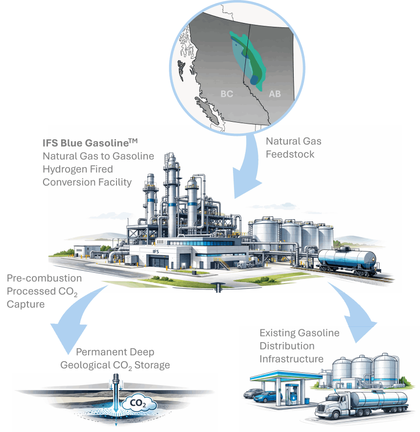 Interprovincial Fuel Solutions (IFS) is advancing IFS Blue Gasoline™, a low carbon intensity synthetic gasoline produced using proven, commercially deployed technologies integrated with permanent carbon capture and storage (CCS).